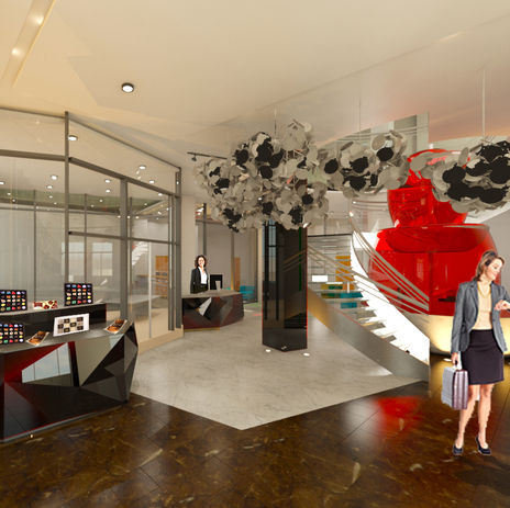 The building of chocolate factory consists of five stories. I designed a reception, a coffee shop, a chocolate experience area, a chocolate shop, a staff bicycle storage room, a projection rooml, a gallery, a function room, micro craft brewery with taste area, office and computer room.